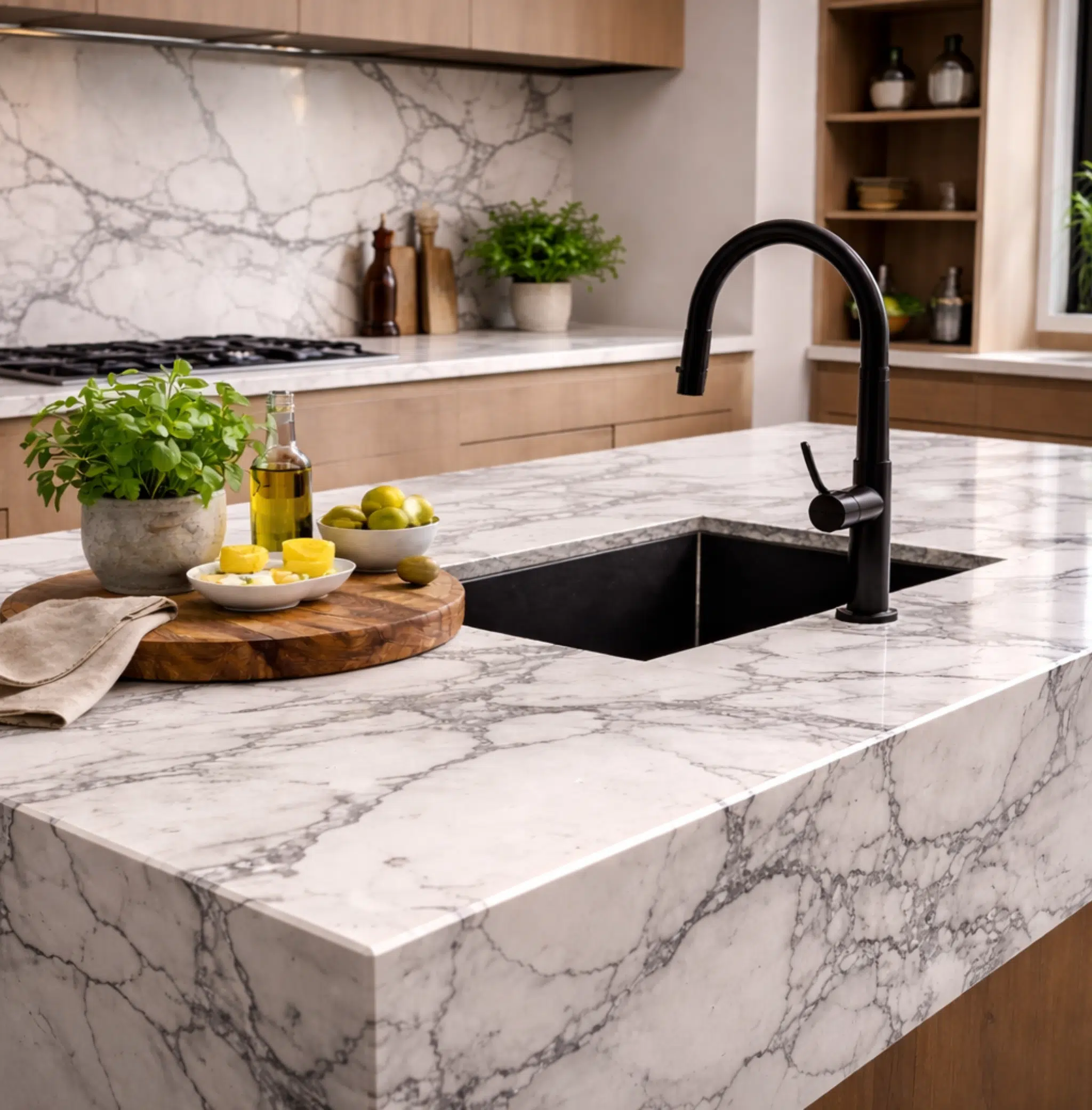 Hoe onderhoud ik een marmeren keukenblad?
